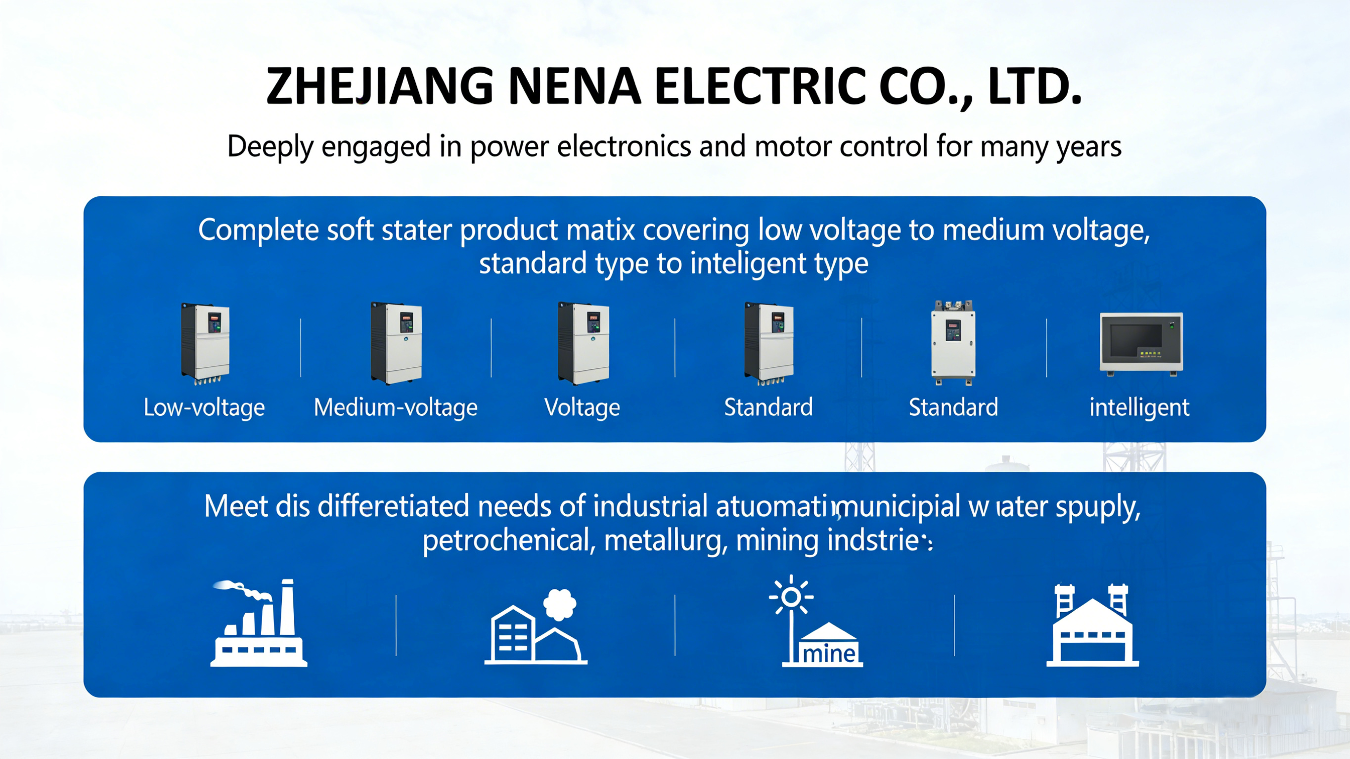 浙江能纳电气有限公司多年来致力于电力电子和电机控制领域。在持续研发投入的推动下,公司已建立起从低压到中压、从标准到智能的完整软起动器产品矩阵,充分满足工业自动化、市政水务、石化、冶金、矿山等各行业多样化、差异化的需求。